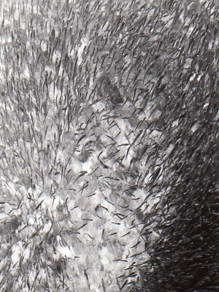 Apparently, what I witnessed is quite common in the fish world, a normal part of the life cycle of many species, but the fact that it happens does not take away from the fascination the phenomenon generates nor the curiosity it evokes about how and why. What factors contributed to these clumps appearing at this precise time? The temperature, the winds, the currents, the shelter of the pier, the fact that this occurred during a full moon phase, or other factors that we cannot ascertain or measure? What does it say about behaviour, for example, individual vs. group? I am sure viewers of these photographs will have many additional questions of their own.